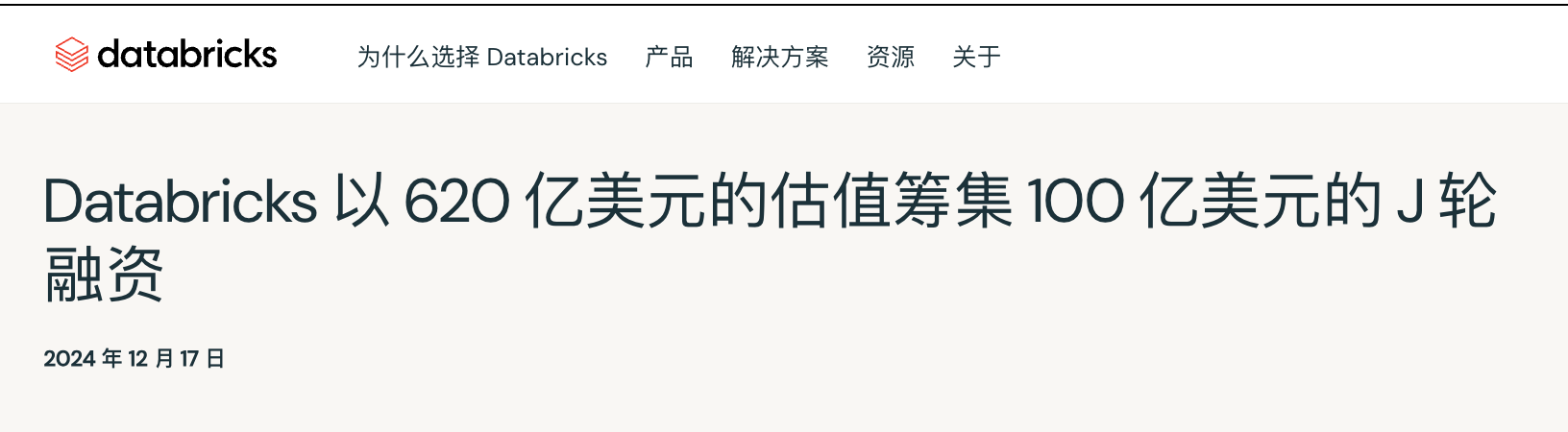AI数据分析平台Databricks今天宣布由Thrive Capital领投的J轮融资,正在筹集100亿美元融资,融资完成后,Databricks估值将达620亿美元。