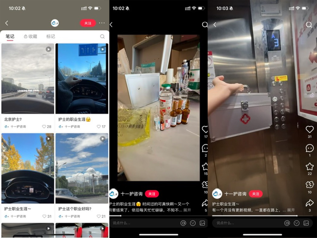 和大多数护士通过「金牌护士」、「护士到家」这类专门的APP接单不同,石女士采用网店的方式,在京东、淘宝、小红书等电商平台上经营。