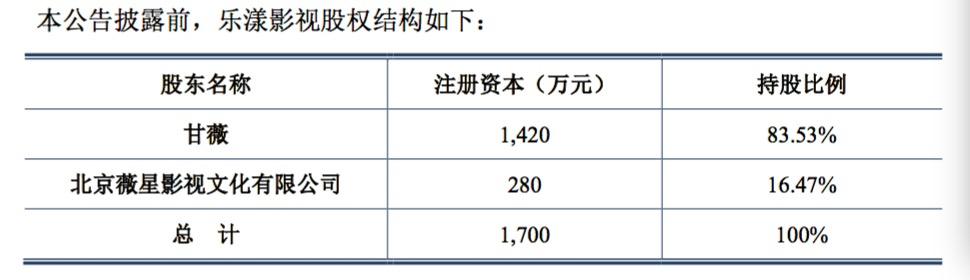 不过,根据公告,上市公司受让股权后,将任命甘薇为乐漾影视总裁,全面负责乐漾影视运营管理工作。乐漾影视成立于2015年6月,此次收购前甘薇合计持有乐漾影视92.07%的股份。