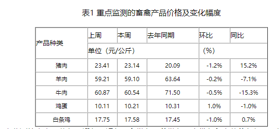 进入12月,羊肉的价格环比上月也有所回落。农业农村部监测的数据显示,12月6日到12月12日这一周内,全国农产品批发市场上的羊肉价格为59.10元/kg,比前一周下跌了0.2%。