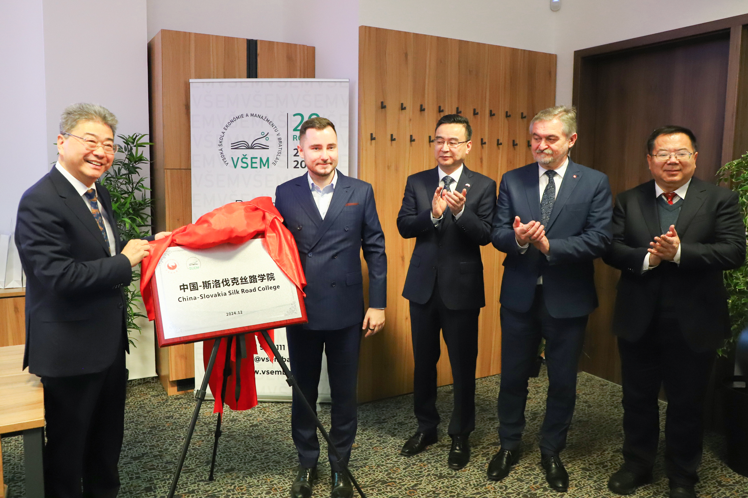布拉迪斯拉发时间12月15日上午,“中国-斯洛伐克丝路学院”在斯洛伐克布拉迪斯拉发经济与管理大学揭牌。
