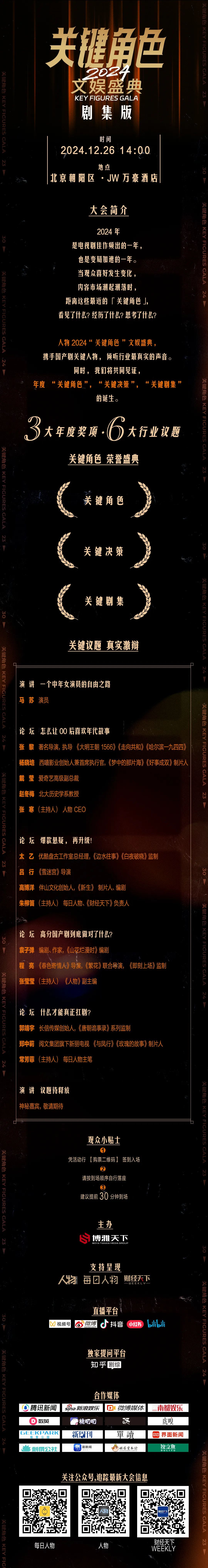 12月26日,他们将齐聚「关键角色2024文娱盛典」,从幕后制作出发,挖掘扛剧基因。