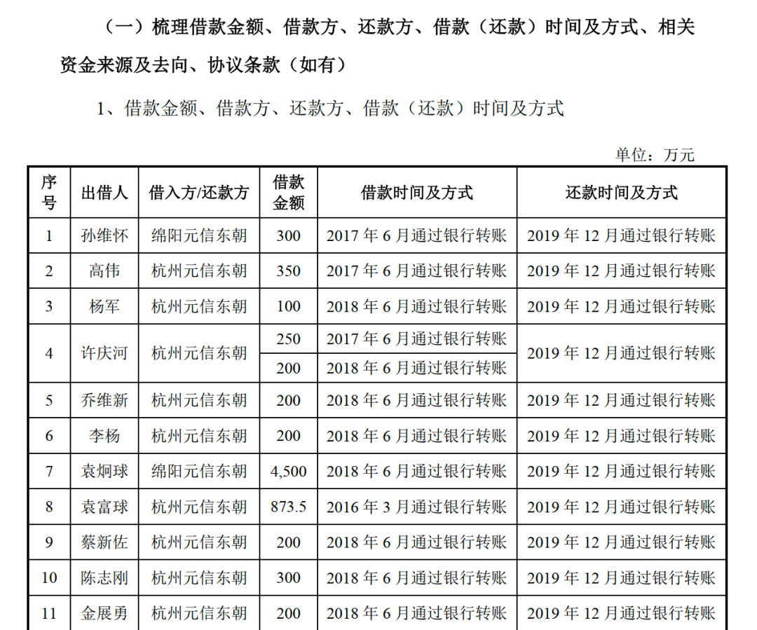 2016年至2018年间,杭州元信东朝、绵阳元信东朝向88位中策橡胶的经销商借款3.44亿元。借款金额从100万元到4700万元不等,其中包括淮南永策商贸有限公司、北京方迪辰轮胎有限公司和北京圣轮宝科贸有限公司等经销商。