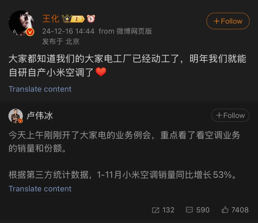 而当前小米或许也意识到靠代工无法掌握“核心科技”,悄悄将研发提上了日程。王化近期在微博透露:“大家都知道我们的大家电工厂已经动工了,明年我们就能自研自产小米空调了。”