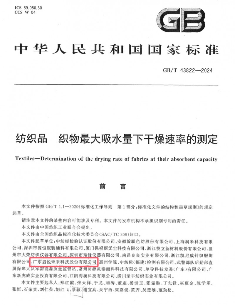 此前,国家相关单位推出《纺织品 织物最大吸水量下干燥速率的测定》和《纺织品 苯残留量的测定》两项国家标准,这两项标准分别针对织物的干燥速率和苯残留量进行了严格规定,为消费者提供了更加科学、准确的评估依据。