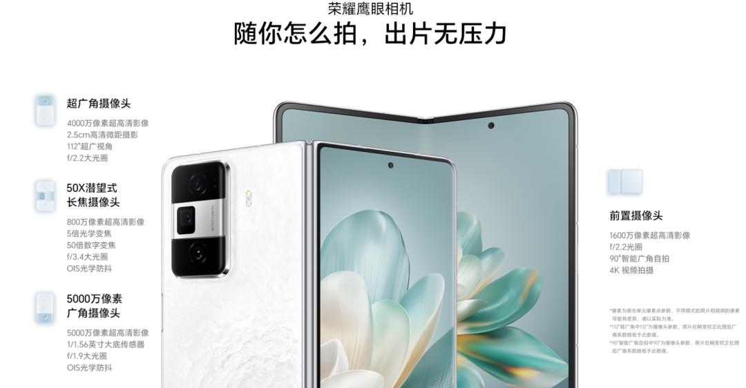 影像,是旗舰机的“看家本事”,过去折叠屏为了控制厚度与重量,无法塞入更高规格的元器件,不得不牺牲一部分影像能力。但2024,市面上的头部折叠屏机型已经不再妥协。比如荣耀为荣耀Magic V3和荣耀Magic Vs3都搭载了单反级荣耀鹰眼相机和潜望式长焦镜头,可以实现最大100X的长焦能力。华为Mate X6采用了自研影像芯片+红枫影像,来呈现丰富多元的色彩。华为Mate X5、vivo X Fold3 Pro、小米MIX Fold4也都有着不俗的拍照能力。