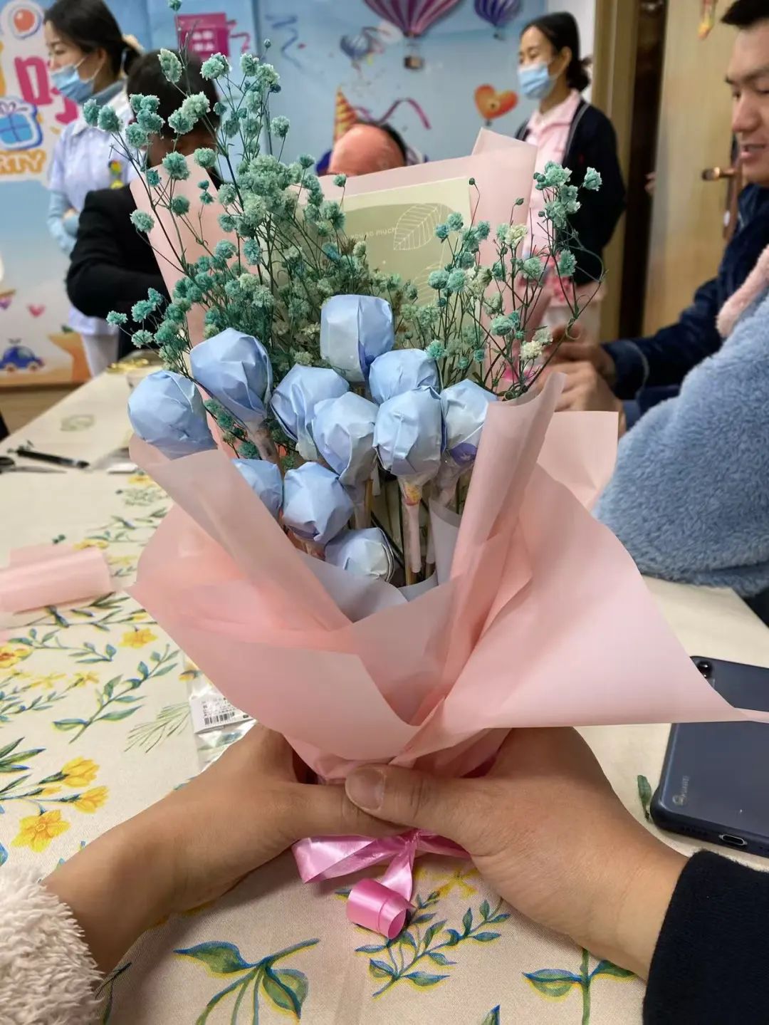章莜收到月子中心准备的花束。图 / 讲述者提供