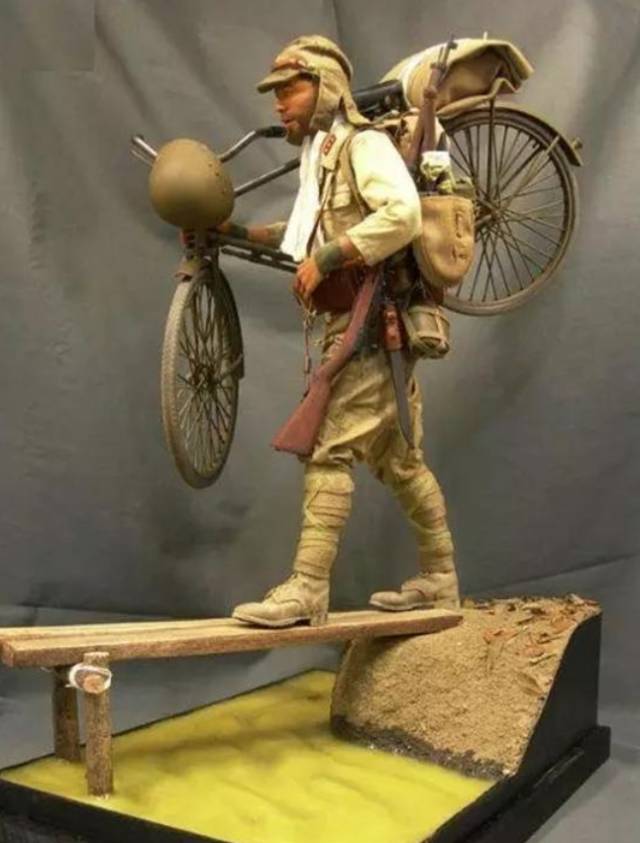 ▲若在行军途中遇到无法骑行的复杂地域,自行车还可以做到“车骑人”,其便于携带的优点很适合地况复杂的战场环境