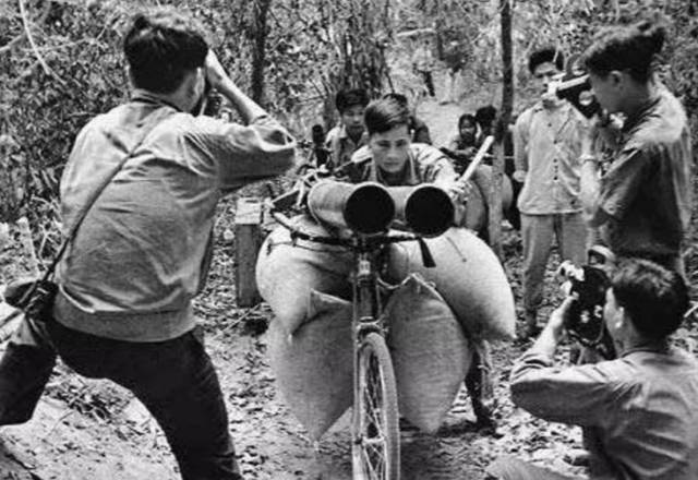 ▲随军记者正在为越军的自行车运输队拍照