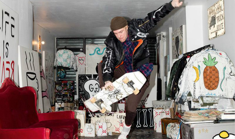 此后,Trevor 将他对 Gucci 元素的沉迷反映在了 Gucci Ghost 的创作中,利用双G符号和 Gucci 的老花纹样,在不同的介质上肆意绘制。你可以在纽约街道的墙上、帆布和衣服上看到他的大作,加上他提出的诸如“Real”和“Life is Gucci”口号,看上去颇有几分 Warhol, Basquiat 和 Mark Gonzales 等艺术大师的味道,当然,他也迅速收获了大批拥趸。