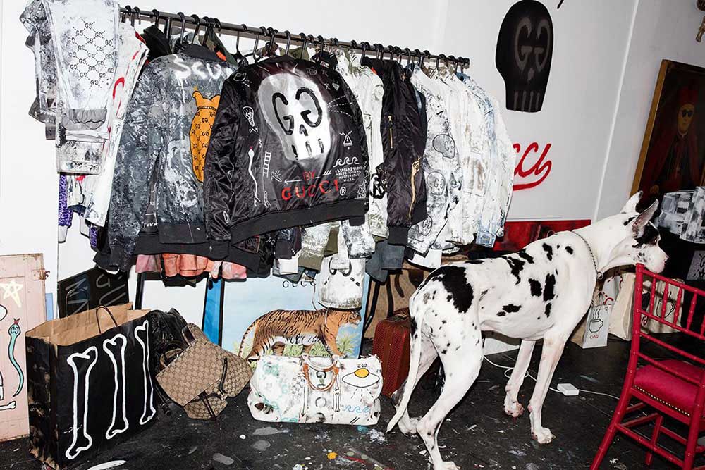 “绘制 Gucci Ghost 是我对那次商场购物体验的一种反应,那时我想,‘头一次我能买得起一块 Gucci 的手表!’” Trevor 说,“当时只是想把我的作品带上 Gucci 元素,但我冷静思考之后,发现自己更希望通过一些行动来吸引品牌的注意,不管是好的还是坏的。我的信念是“一直这样做下去,直到 Gucci 想要起诉或是雇用我!”我开始在所有的服装上大展拳脚,但很多人并不看好,他们认为 Gucci 绝对不会找我合作,品牌自己才不会引火上身!”但我十分坚信自己的决定是明智的,这样做一定能奏效,只不过需要一位有慧眼的伯乐。设计师 Alessandro Michele 就是那个懂我的人,他走马上任后选择了跟我合作。