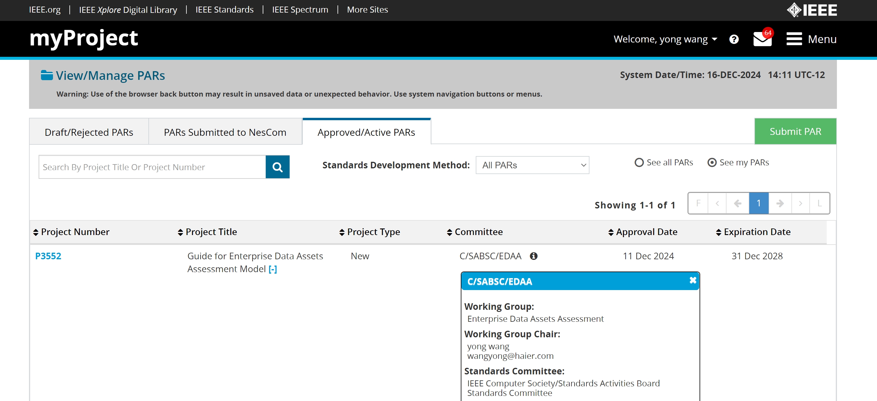 2024年12月11日,美国布里奇沃特召开的IEEE 标准协会标准理事会(IEEE SASB)大会正式批准卡奥斯COSMOPlat工业互联网平台主导的企业数据资产评估模型国际标准立项。该标准是全球首个企业数据资产评估国际标准,也是卡奥斯首次在数据要素领域主导制定国际标准。会议同时成立了由卡奥斯COSMOPlat工业互联网平台专家担任主席的标准工作组Enterprise Data Assets Assessment(简称“EDAA”)。