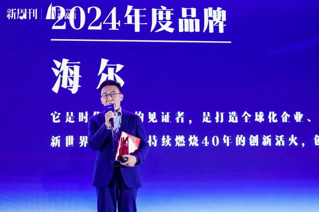 2024“年度品牌”海尔集团品牌管理部副总经理滕新为发表感言。