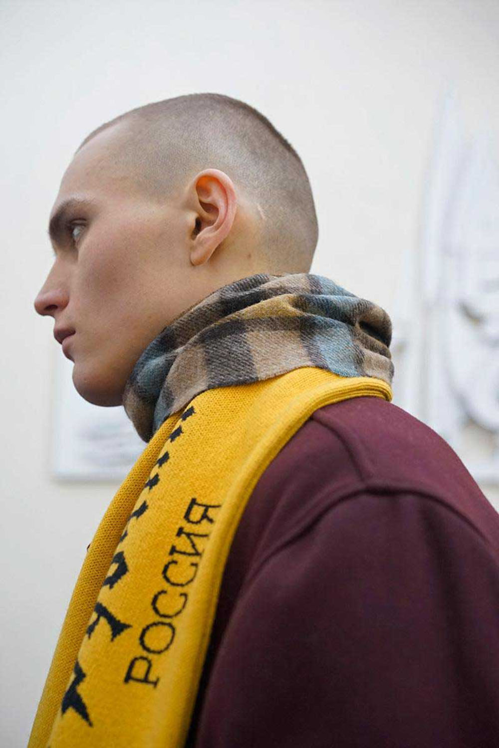俄罗斯人民是俄罗斯母亲最好的大使,而 Gosha 最好的大使就是他的团队成员。他们是一群十几二十岁的少年,但他们在谈论 Gosha 时却透出一种与年纪不符的奉献精神。Artem Nanushyan 滔滔不绝地说道:“没有任何人能像 Gosha 一样对我产生如此深远巨大的影响,他对我所说的一切我都认同和理解。”Artem 在加里宁格勒大秀中担任造型师,他是一名艺术家和音乐家,有一双迷人的大眼,洁净的光头格外耀眼。