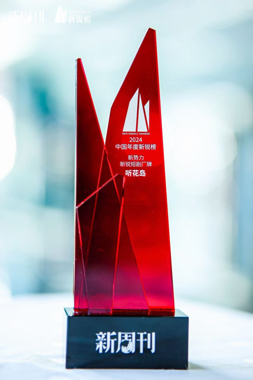 2024年12月20日,《新周刊》主办的“2024中国年度新锐榜荣誉盛典”在北京举办。十月初五影视旗下的短剧厂牌听花岛,凭借优质的短剧作品摘得“新势力·新锐短剧厂牌”荣誉。
