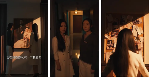 该剧前期主要讲述了郑萋陷入婚姻问题,如何制定计划,解决问题的剧情。光影上便使用了大量高反差的暗黑基调,阴沉空间等暗调,以展现人物内心的焦灼,烘托剧中的悬疑氛围;人物多用明调,以更细致的体现人物内心的情感。