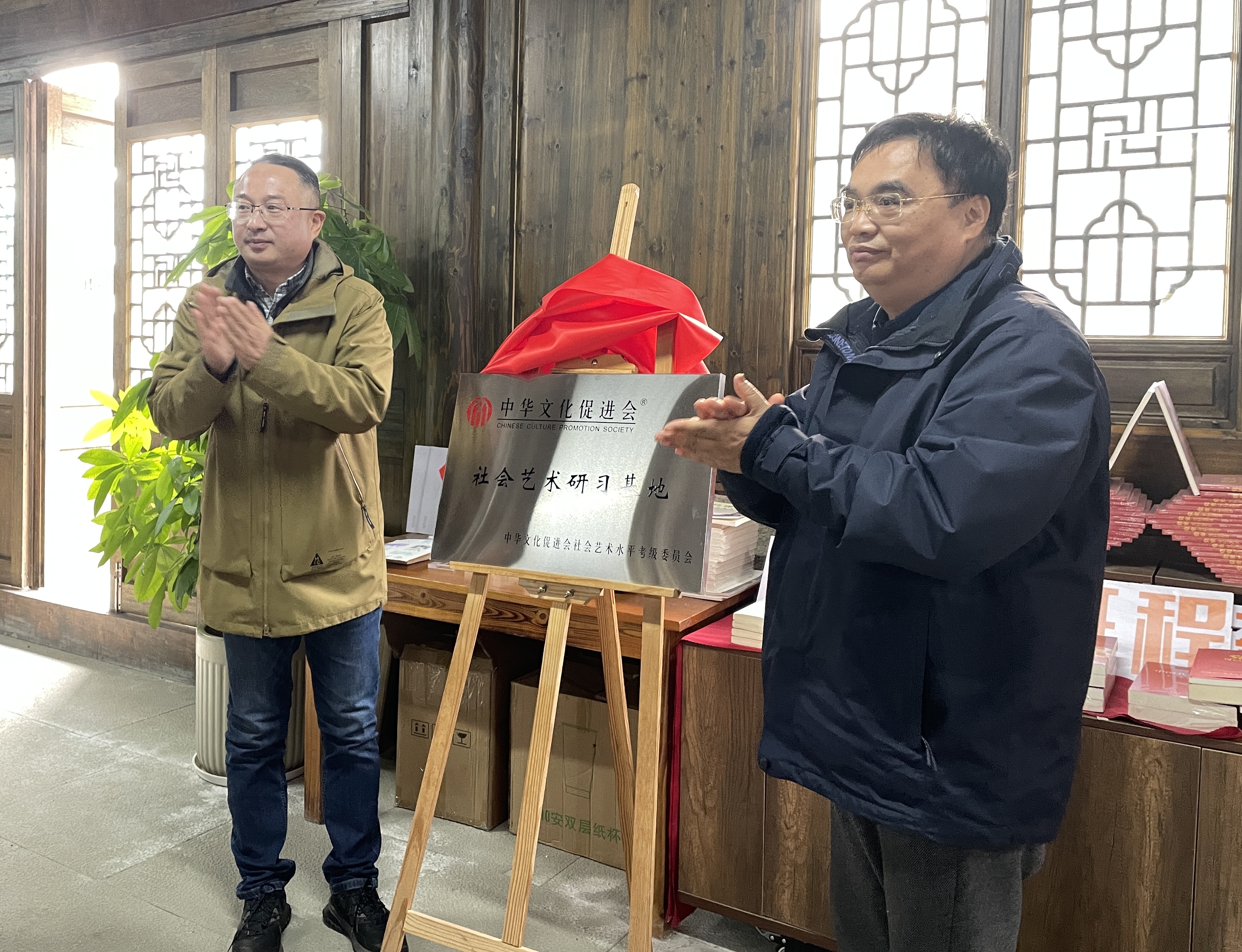 活动上,中华文化促进会社会艺术水平考级委员会授予塘溪镇沙村社会艺术研习基地牌子,浙江省文化广电和旅游厅二级巡视员、浙江省文化和旅游厅社会组织党委书记戴言和鄞州区委宣传部常务副部长应林辉共同揭牌。