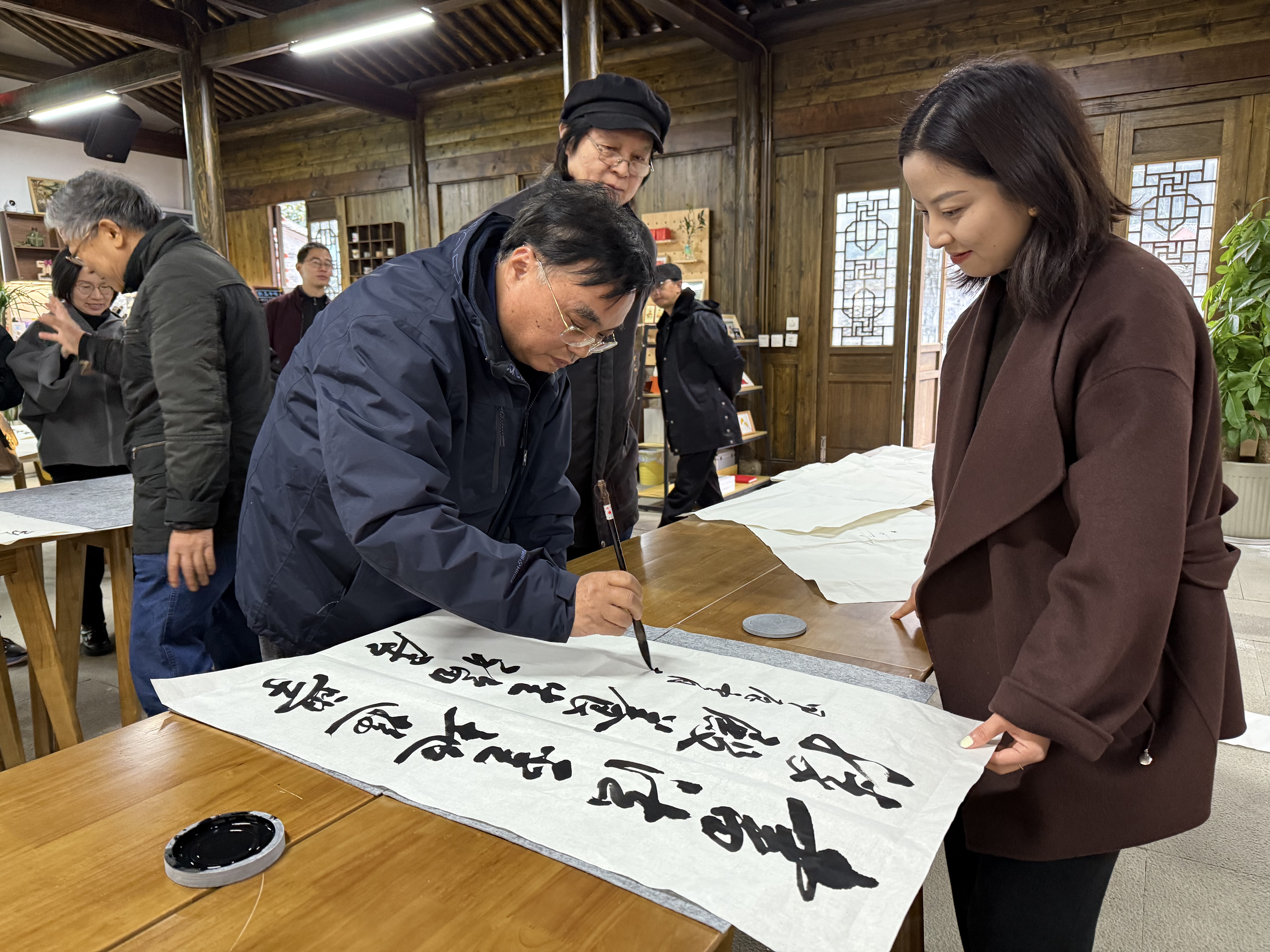在书法创作交流环节,团队中的书法家们结合鄞州、塘溪文化底蕴挥毫泼墨,创作出一幅幅精美的书法作品,既有端庄大气的楷书,也有圆润流畅的篆书,还有灵动飘逸的行书,充分展示了书法艺术的魅力和多样性。书法名家们表示,书法不仅是一种艺术形式,更是一种文化传承和精神追求。通过不断学习和实践,可以不断提升自己的书法水平,更好地传承和弘扬传统文化。