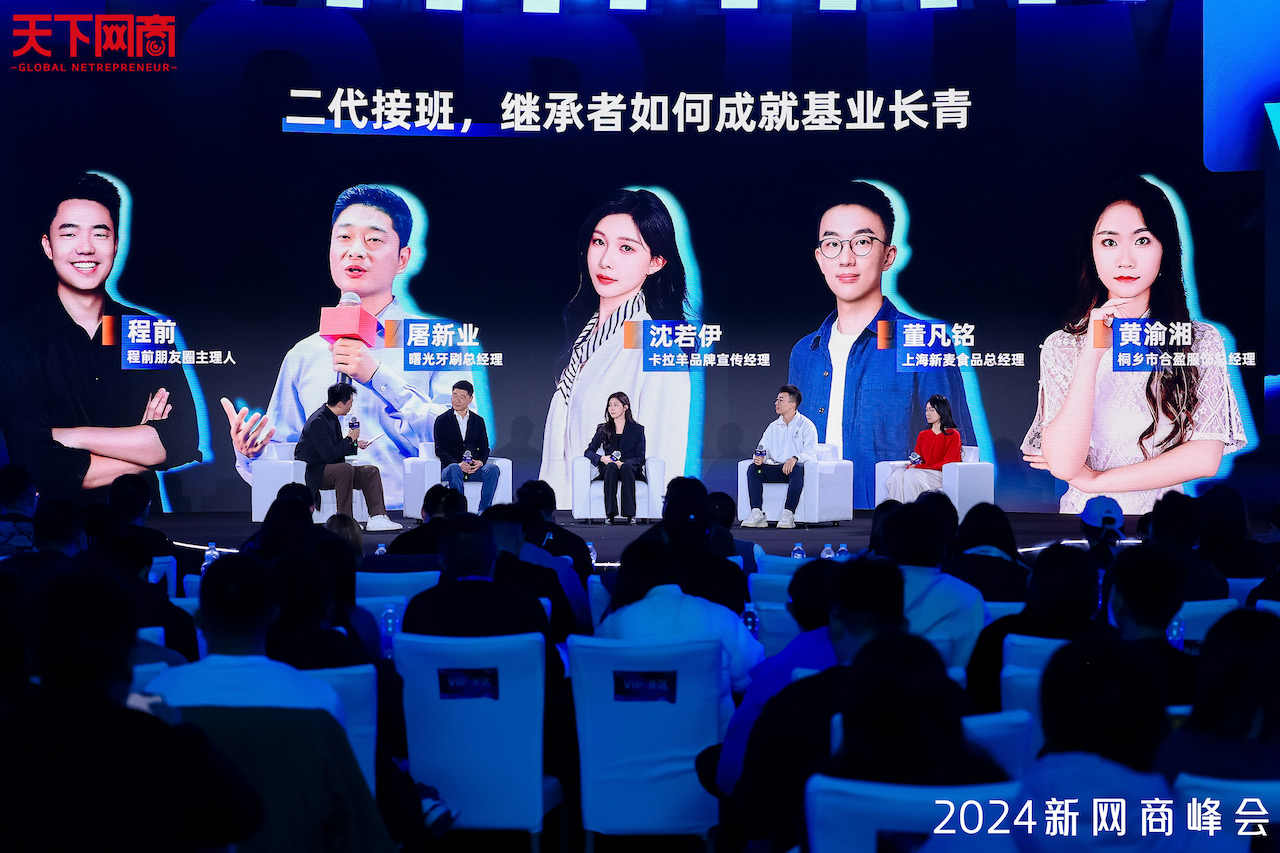 此次峰会,我们特别设置了“二代接班”圆桌分享,卡拉羊品牌宣传经理沈若伊、曙光牙刷总经理屠新业、上海新麦食品总经理董凡铭、合盈服饰总经理黄渝湘与程前朋友圈主理人程前共同探讨了接班潮来袭下,“二代”青年们如何传承与创新。