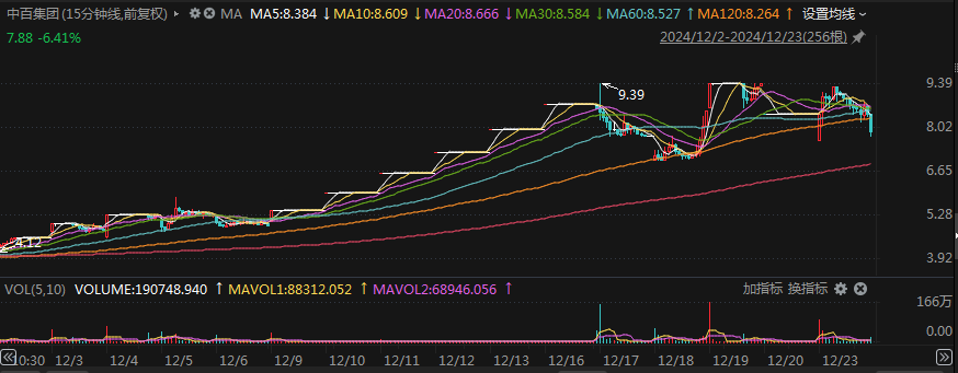 12月23日,中百集团(000759.SZ)盘中一度走出“地天板”。最终收跌6.41%,报7.88元/股。