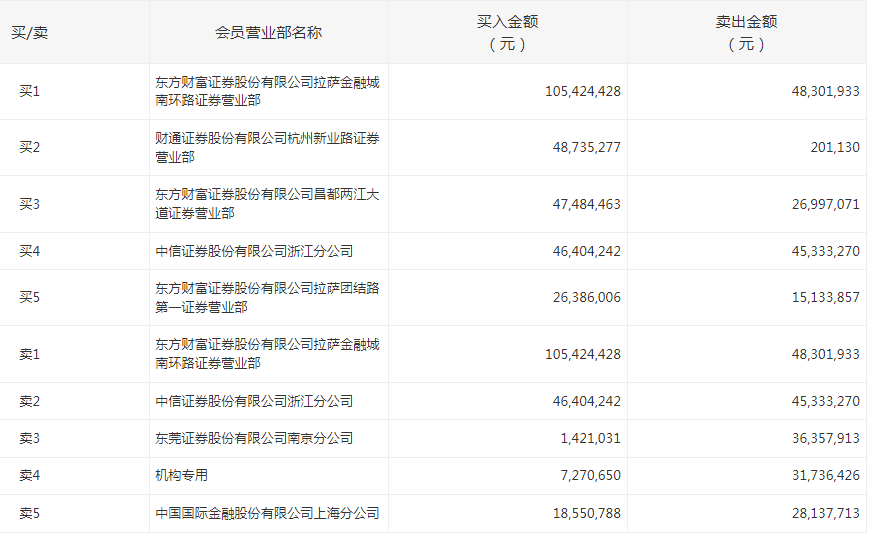 12月23日龙虎榜显示,中百集团异动成交额营业部中,前五买入额合计2.74亿元,卖出额合计1.9亿元。其中,东方财富证券股份有限公司拉萨金融城南环路证券营业部以1.05亿元位居买入榜第一名,同时以4830.19万元居卖出榜第一名。该营业部近期是中百集团龙虎榜的常客,位居12月19日龙虎榜第五大卖出营业部、12月18日龙虎榜第二大买入营业部及12月10日龙虎榜第五大卖出营业部。