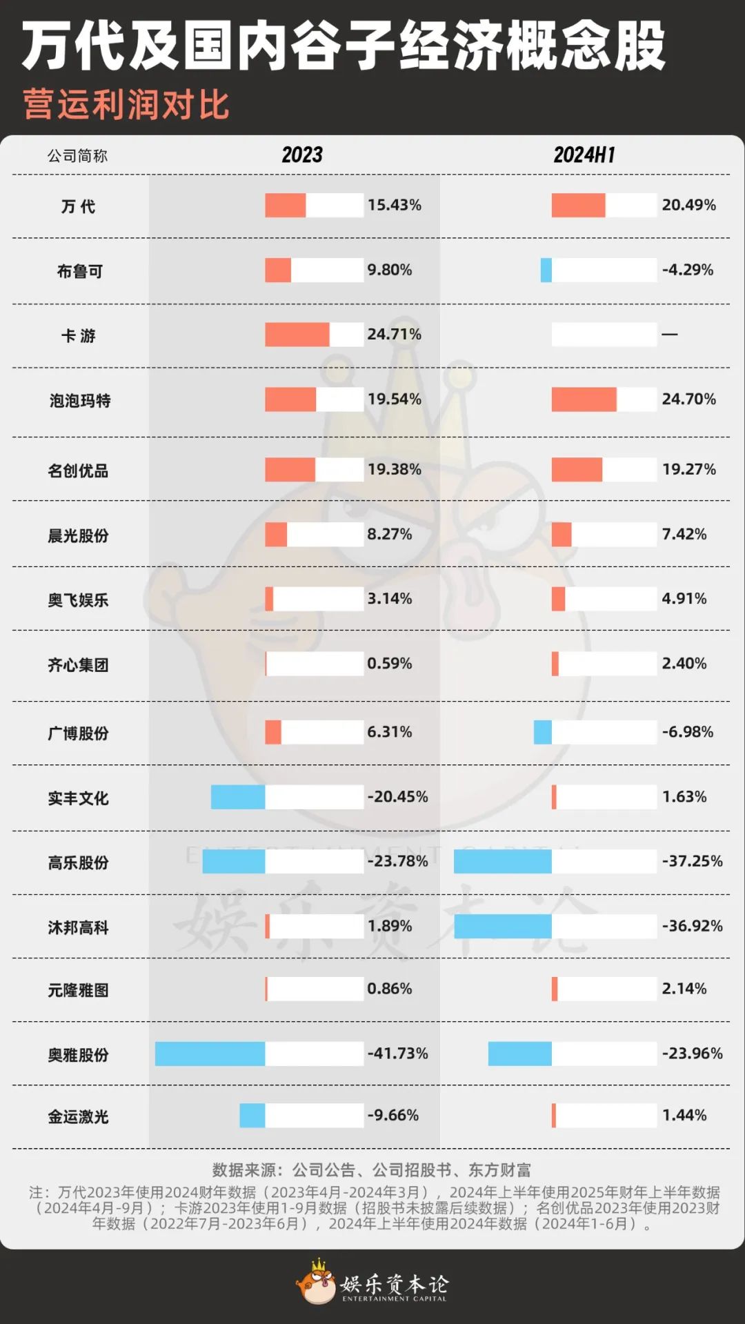 图10 万代及国内谷子经济概念股营运利润对比,数据来源:公司公告、公司招股书、东方财富