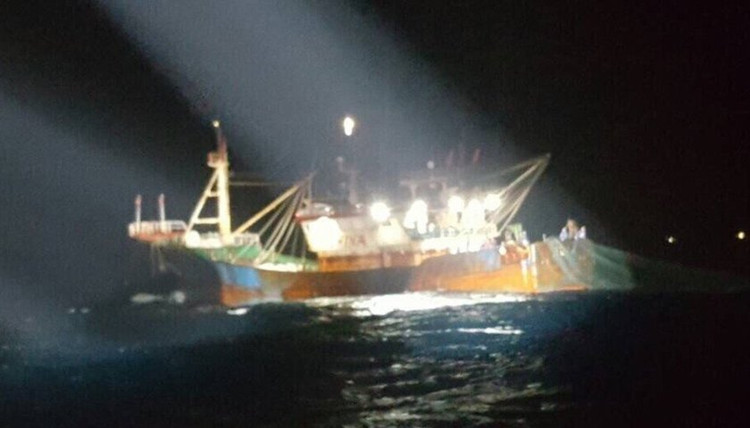 基隆海巡队表示,经查“浙”船是3月17日上午9时自浙江省玉环县坎门港出发,船上计有10人,船重130吨,以单拖网方式从事作业,将视违法情节状况裁处120万至240万元罚款,已带返基隆港侦办。