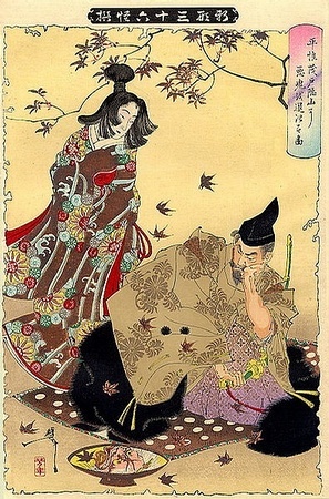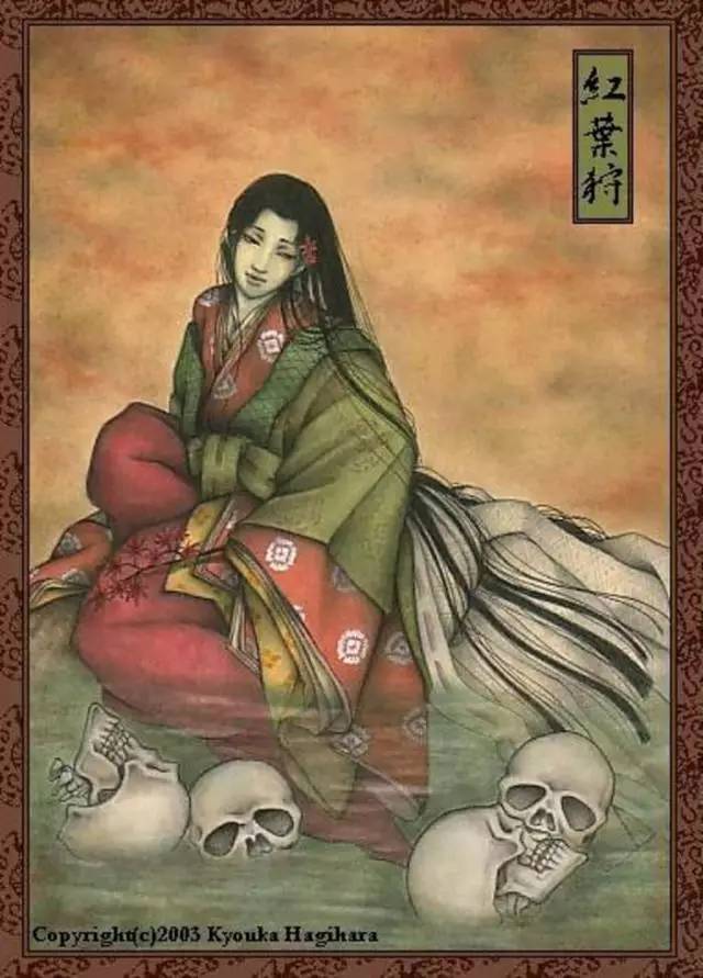 鬼女红叶源自日本信州户隐山鬼女传说中的女主角,又称户隐红叶,传说中比酒吞童子更为风华绝代。能剧中有以鬼女红叶为题材的戏曲『红叶狩』。