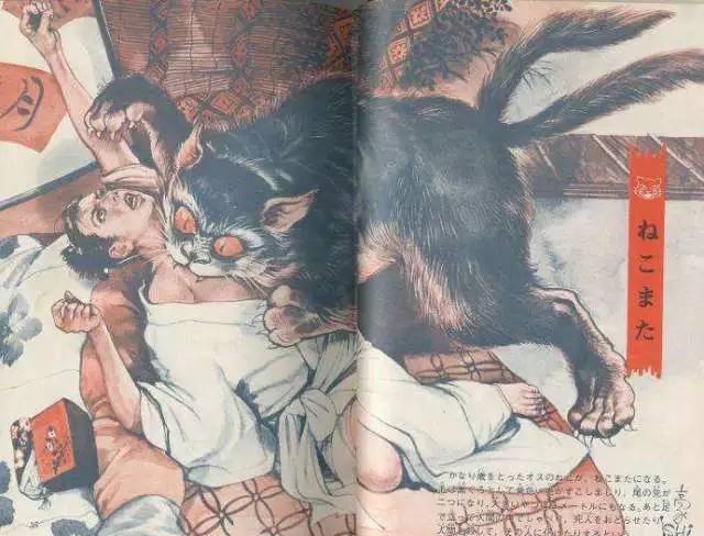 在日本则将猫妖称为「猫又」,通常是一种有着两条尾巴的黑猫形象,耳朵大而尖,牙齿为双面锯齿型。