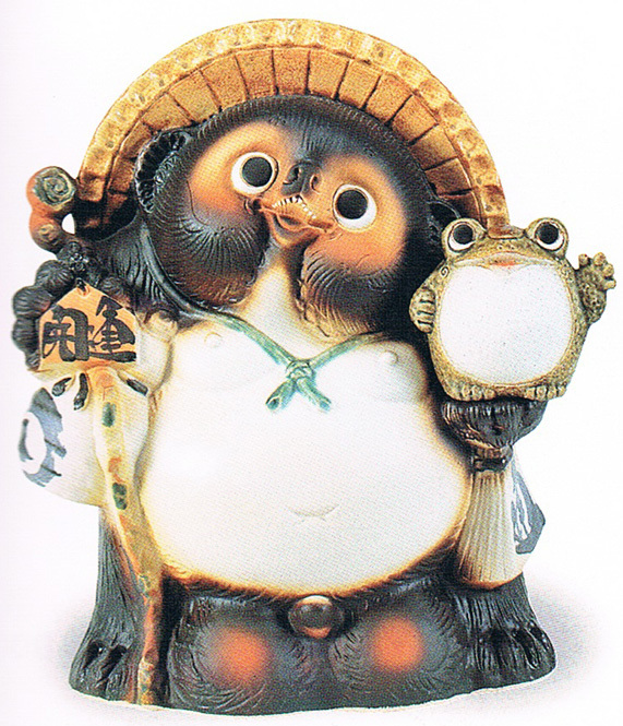日本饮食店门口常摆着一只带着斗笠的狸,以祈求生意兴隆。对,就是上图这只宛若ZZ的呆萌狸猫。