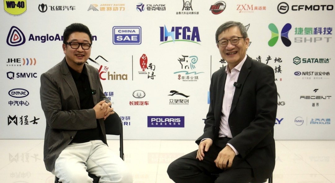 英美资源集团中国区总裁陈卫(右)在巴哈大赛期间接受铂道专访。铂道供图