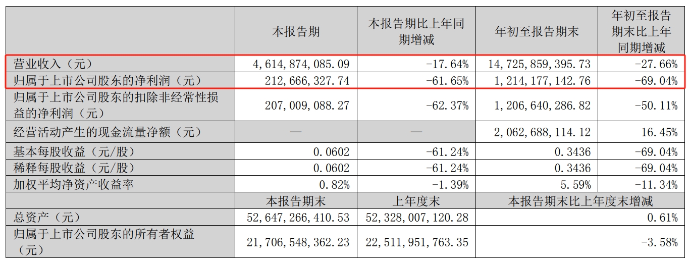 业绩方面,2024年前三季度,冀中能源实现营业收入147.26亿元,同比下降27.66%;实现归属净利润12.14亿元,同比下降69.04%。