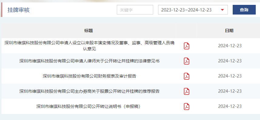 12月23日,据全国中小企业股份转让系统公告显示,深圳市维琪科技股份有限公司(以下简称“维琪科技”)申请在新三板挂牌,保荐机构为国信证券。