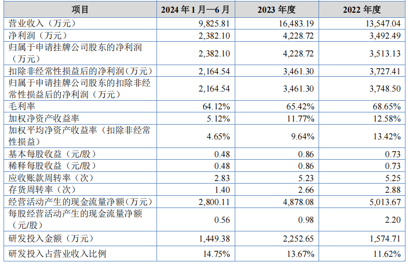 就维琪科技此次公布的数据来看,2022年-2024年上半年,维琪科技研发投入分别为1574.71万元、2252.65万元、1449.38万元,占总营收比重分别为11.62%、13.67%、14.75%,呈上升趋势。截至招股书发布,维琪科技研发人员共83人,占总员工人数的21.01%。
