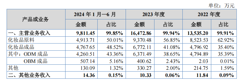 2024年上半年,维琪科技营业收入为0.98亿元,净利润为0.24亿元。具体而言,化妆品原料业务营收为0.49亿元,同比增长24.59%;ODM成品业务营收为0.42亿元,同比增长79.29%。以上两大业务占维琪科技总营收的98.53%。由此可推算出,维琪科技今年上半年两大主营业务整体增长超45%,远超2023年21%的同比增长。