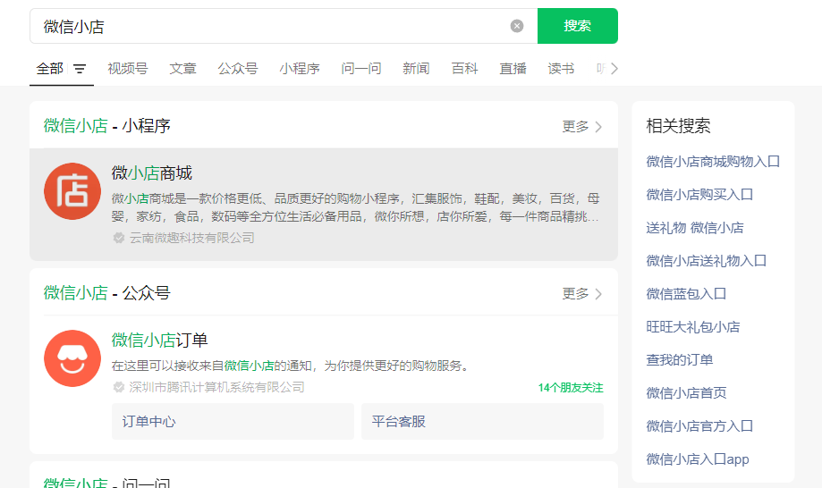 图:直接在微信搜索“微信小店”,并不能找到它的入口