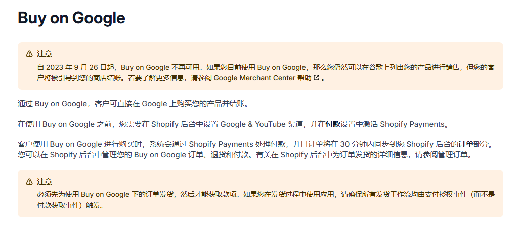 图:Saas平台上对谷歌商家的通知,他们无法再使用“Buy on Google”