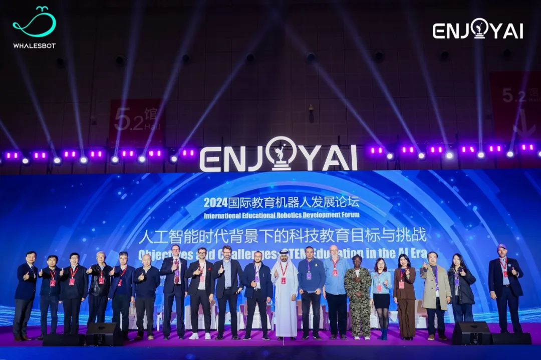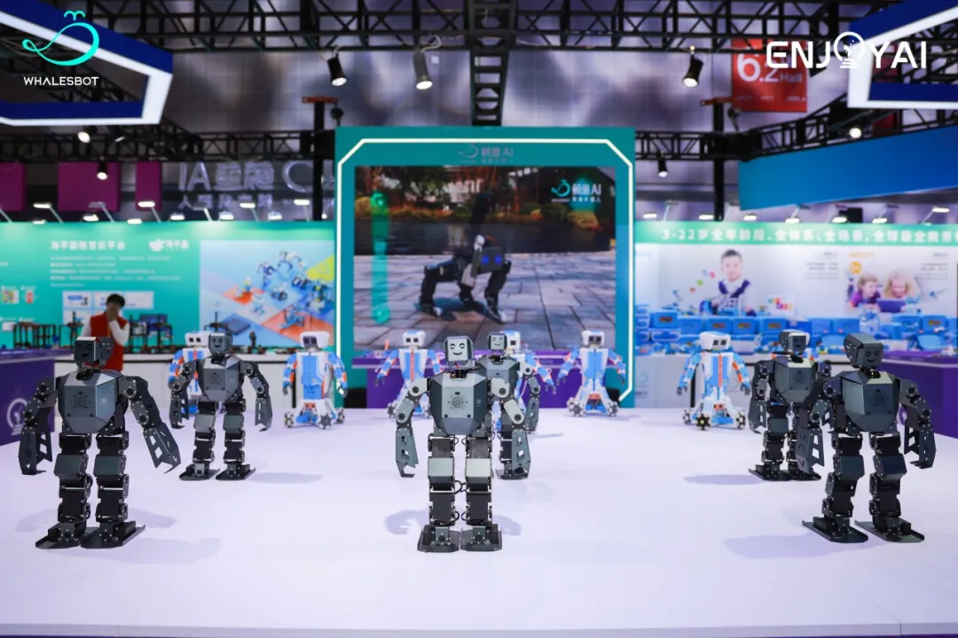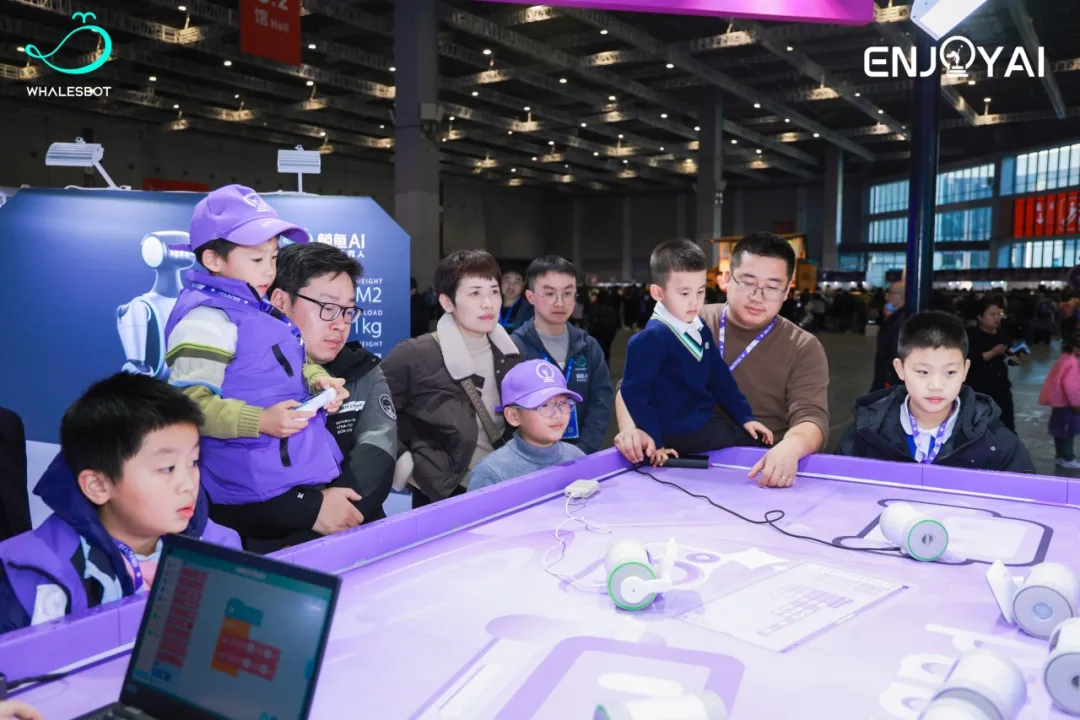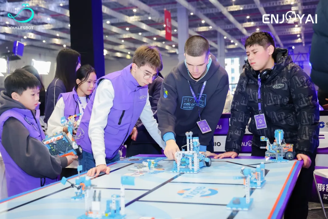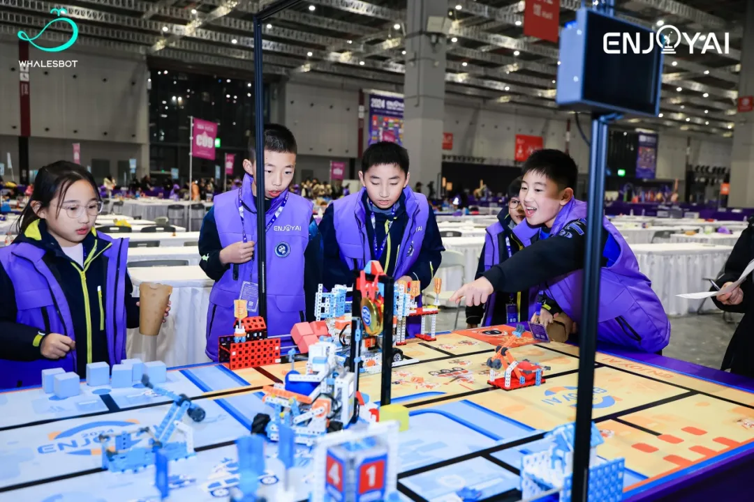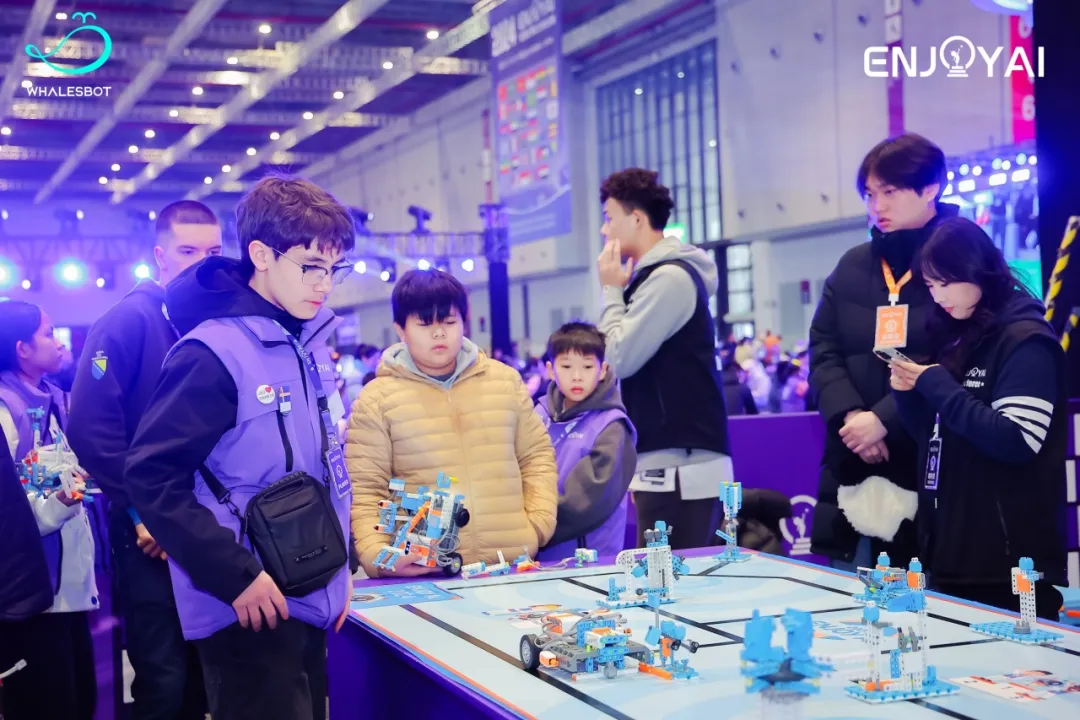 鲸鱼机器人作为 ENJOY AI 全球的主要赞助商,活动设置了“会、展、赛”三大板块,全方位展现科技教育的多元魅力。