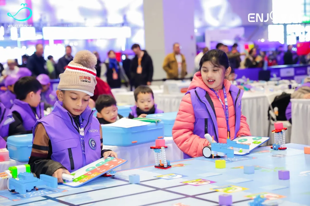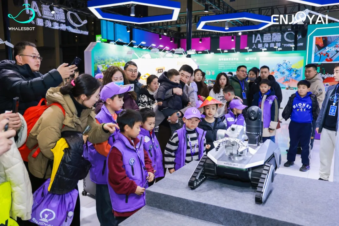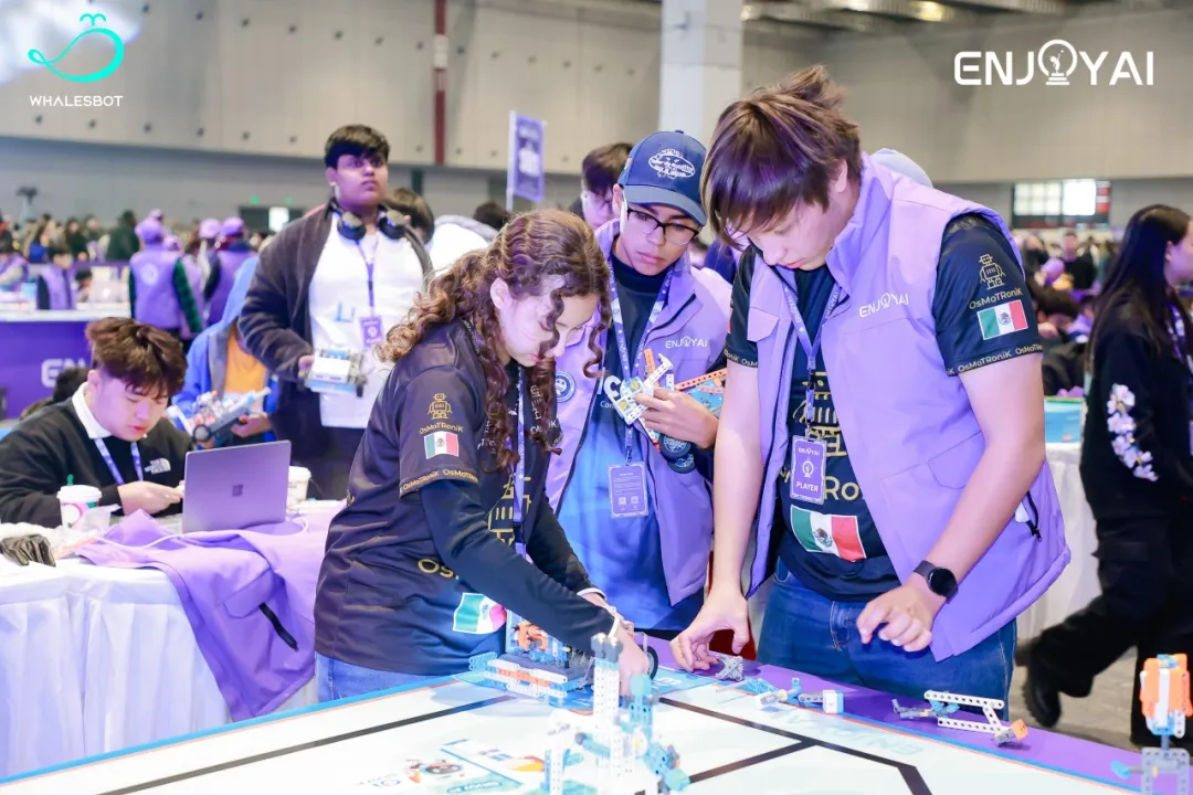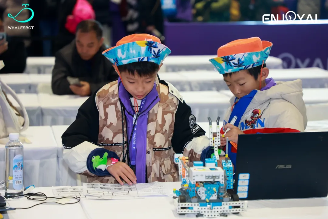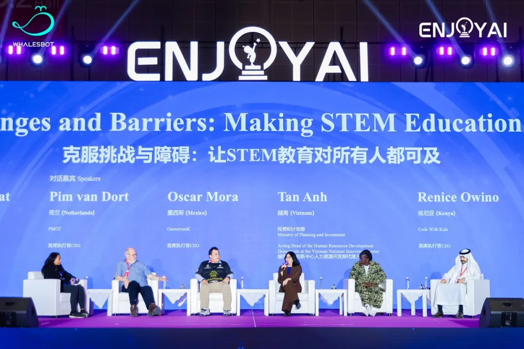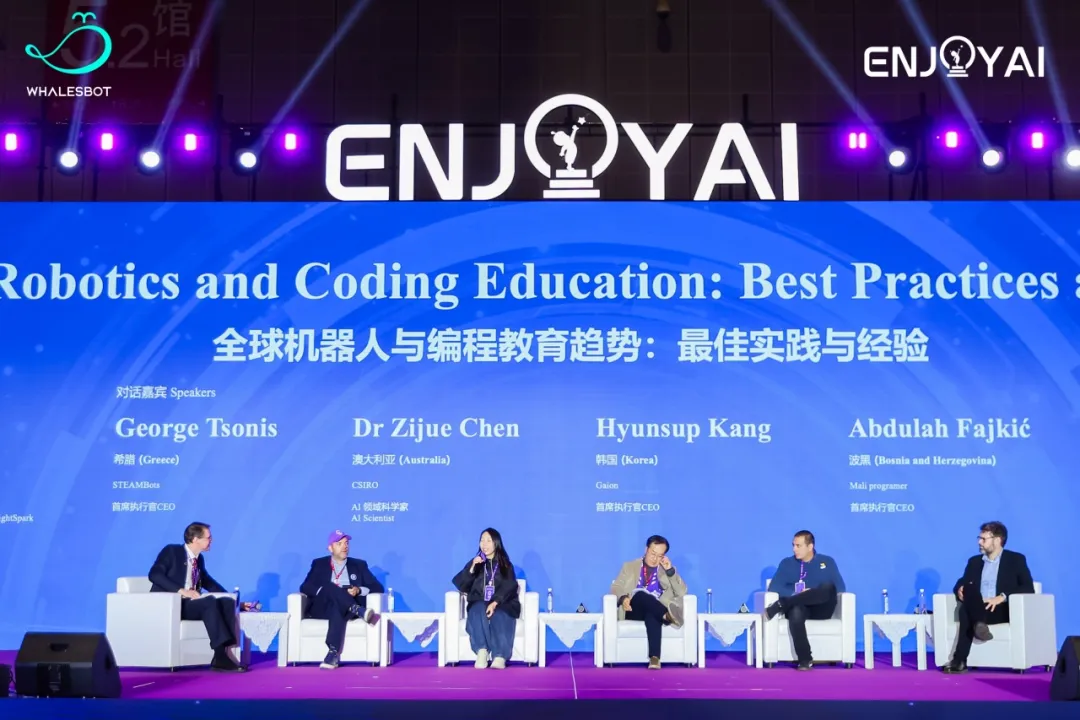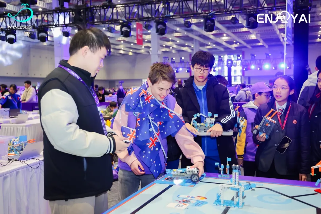 鲸鱼机器人作为 ENJOY AI 全球的主要赞助商,活动设置了“会、展、赛”三大板块,全方位展现科技教育的多元魅力。