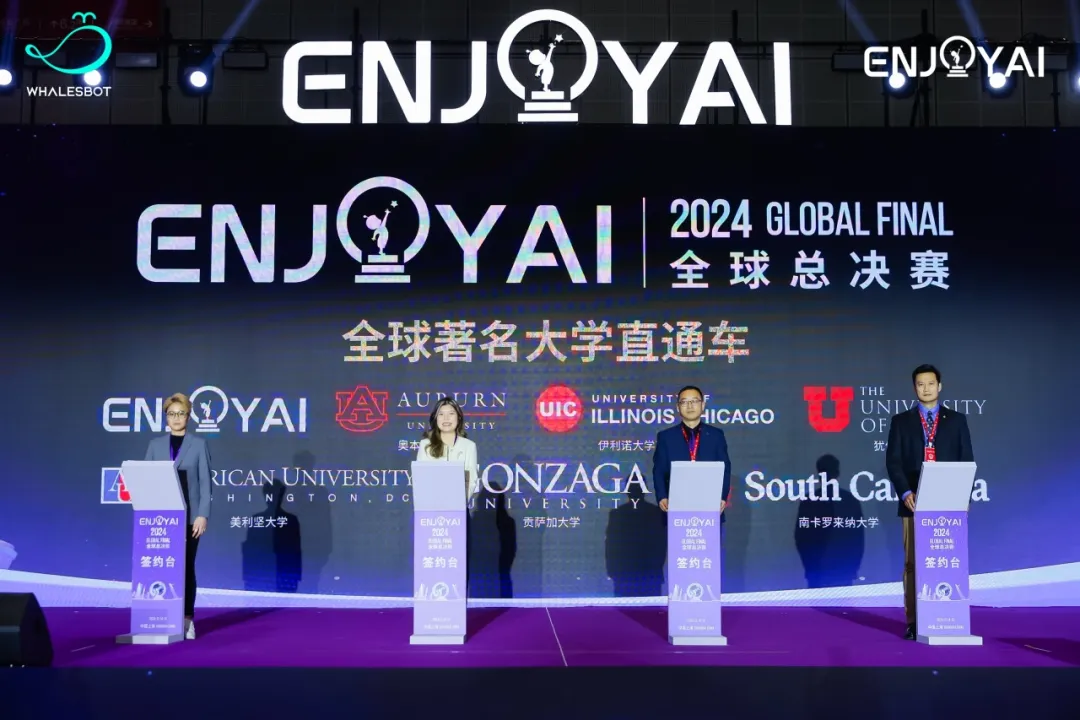 开幕式上,ENJOY AI 与美国、英国高中及全球著名大学成功签约合作,正式开通“全球顶尖高中直通车”和“全球著名大学直通车”项目。