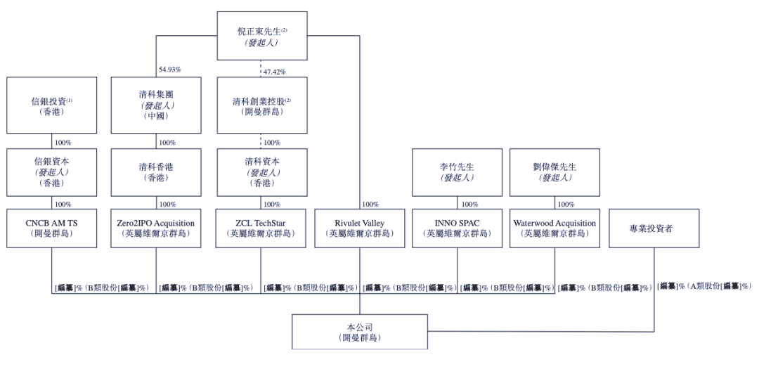 TechStar在上市后的股东架构中,信银资本、清科集团、清科资本、倪正东、李竹、刘伟杰持有B类股份,持股比例分别为35%、15%、15%、10%、20%、5%。