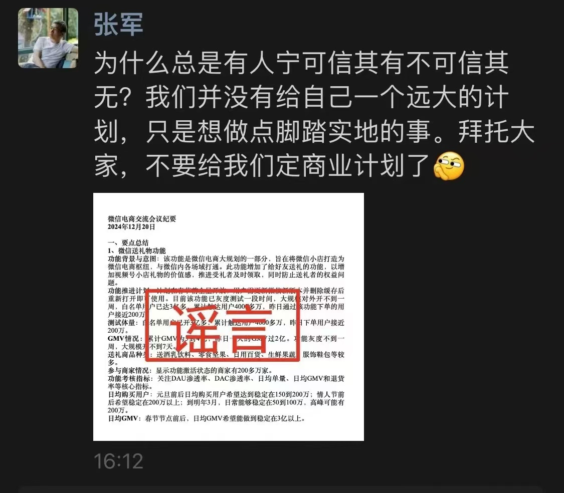 网上那份所谓“会议纪要”传得有模有样、被人广泛采信,原因也在于此。这太契合许多人“微信以送礼物功能为切口下了一盘大棋”的想象了。