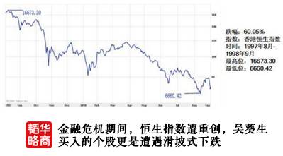 1997年,亚洲金融风暴来袭,从东南亚直奔香港,港九一夜之间风声鹤唳。吴葵生此前以每股8块3的股价重注了一只股票,金融危机正式爆发前,该股价跌到了每股6块出头。券商经纪人打电话给吴葵生:吴生,你赶紧割掉,金融市场可能要出问题,不知道有多严重。
