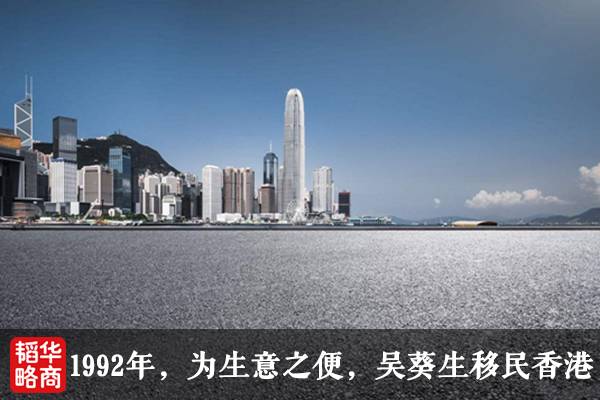 烟草生意涉及铜版纸、白卡纸等材料,这类物资皆从国外进口,为了生意之便,1992年吴葵生全家移居香港,设立贸易公司,并且买楼置地,结识了一批关系很好的港商。