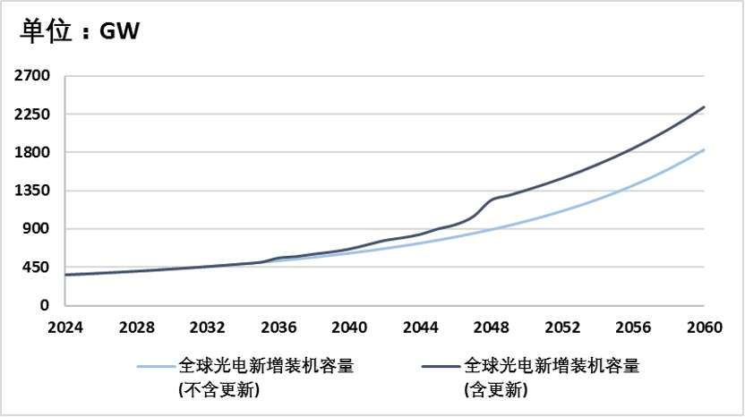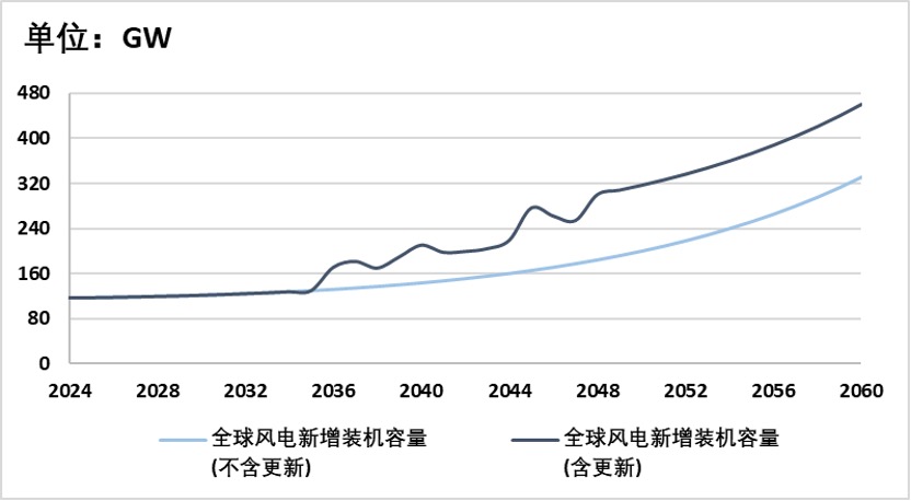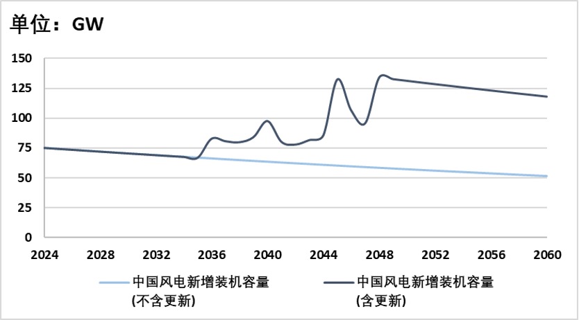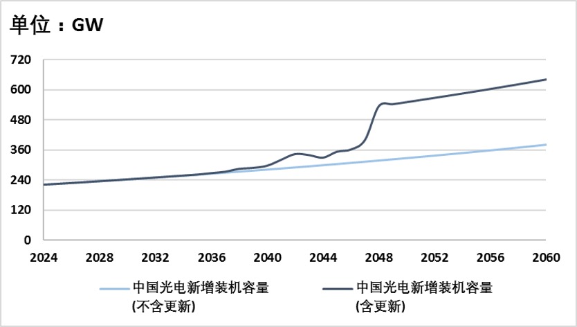 不考虑淘汰更新,假设从2024年到2060年,风光发电装机需求会以均匀速度变化。