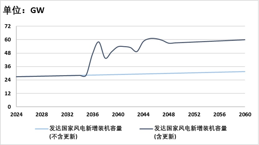 发达国家光电装机需求在2024年达93 GW,到2060年预计增加到2024年的2.6-4倍;其风电装机需求在2024年达27 GW,到2060年预计增加到2024年的1.2-2.2倍。
