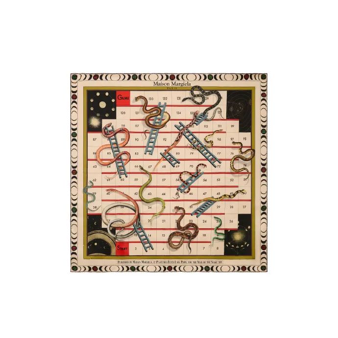 该特别系列包含三款单品 —— 连帽卫衣、T 恤和印花丝巾。连帽卫衣和 T 恤采用 “朔望纪新” 主题印花, 于满月中装饰 “蛇” 字刺绣纹样;丝巾则以传统棋盘游戏 “蛇与梯子” 为灵感:在月相环绕中,蜿蜒的蛇乘梯而上,赋予新一年步步高升的美好憧憬与期待。(品牌官方)