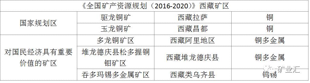 2016年底,国家发布《全国矿产资源规划(2016-2020)》,其中明确将西藏驱龙铜矿等矿区列入国家规划区和对国民经济具有重要价值的矿区。