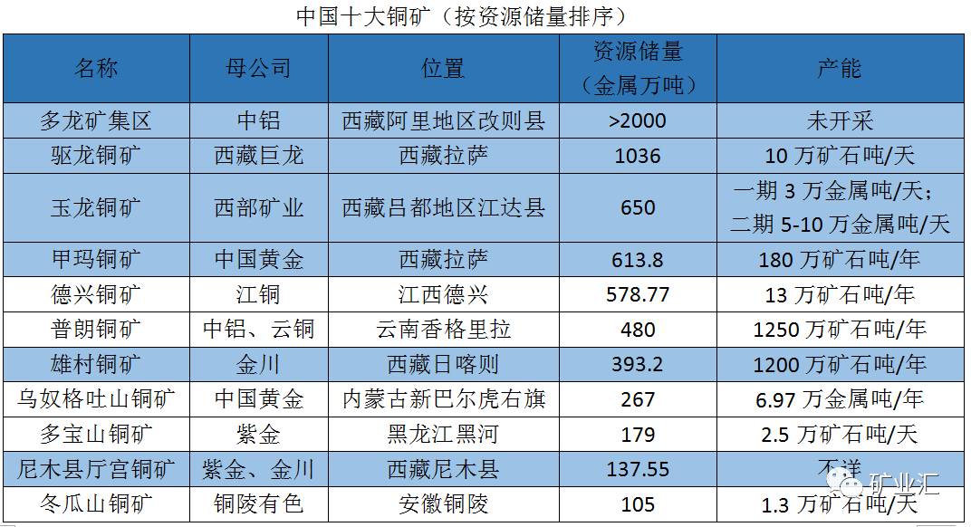 值得一提的是,西藏的铜矿资源丰富,全国十大铜矿中,六家在西藏地区,前四名均在西藏地区,同时,西藏铜资源潜力巨大,有望达到全国三分之一以上,主要集中分布于冈底斯成矿带、藏东玉龙成矿带和班公湖-怒江成矿带。