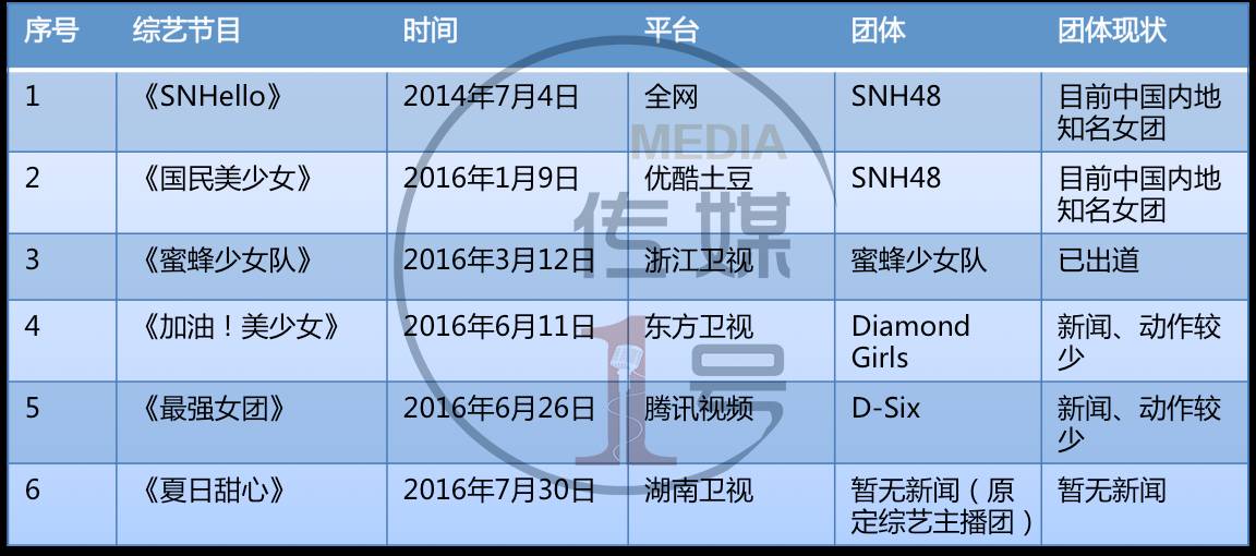 其实,2016年国内已对这一模式展开探索,但真实结果却不理想。偶像女团养成类节目中,除《蜜蜂少女队》所对应的团体“蜜蜂少女队”成功出道并时有新闻外,其他几个节目所养成的女团目前几乎鲜有新闻。